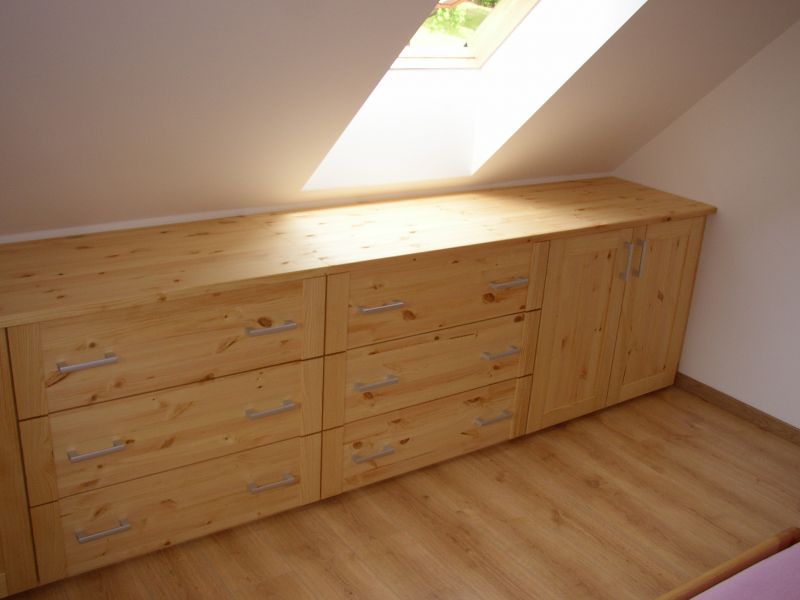 Zaměříme a vyrobíme Vám skříně a komody do nestandardních prostor Vašeho podkroví.